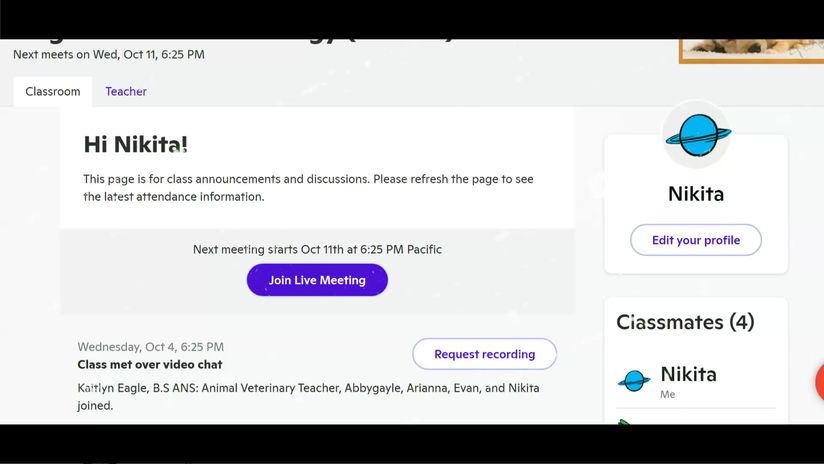 I have learned many thing with an online vet like the anatomy of dogs and cats or the anatomy of horses. I have been learning with this teacher for almost two years now. I have tried other vet teachers but I liked this teacher the best because of the way she teachers. My favorite part of the class is when we learn about how to see your dog or cat size with different ways.